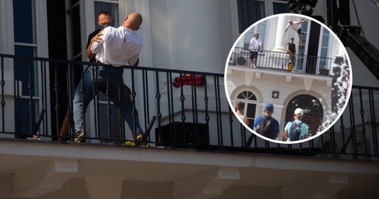 Lot prezydenta był widowiskowy, a kilkusekundowy pokaz w jego wykonaniu zakończył się na miękkim materacu, który umieszczono tuż pod balkonem ratusza.